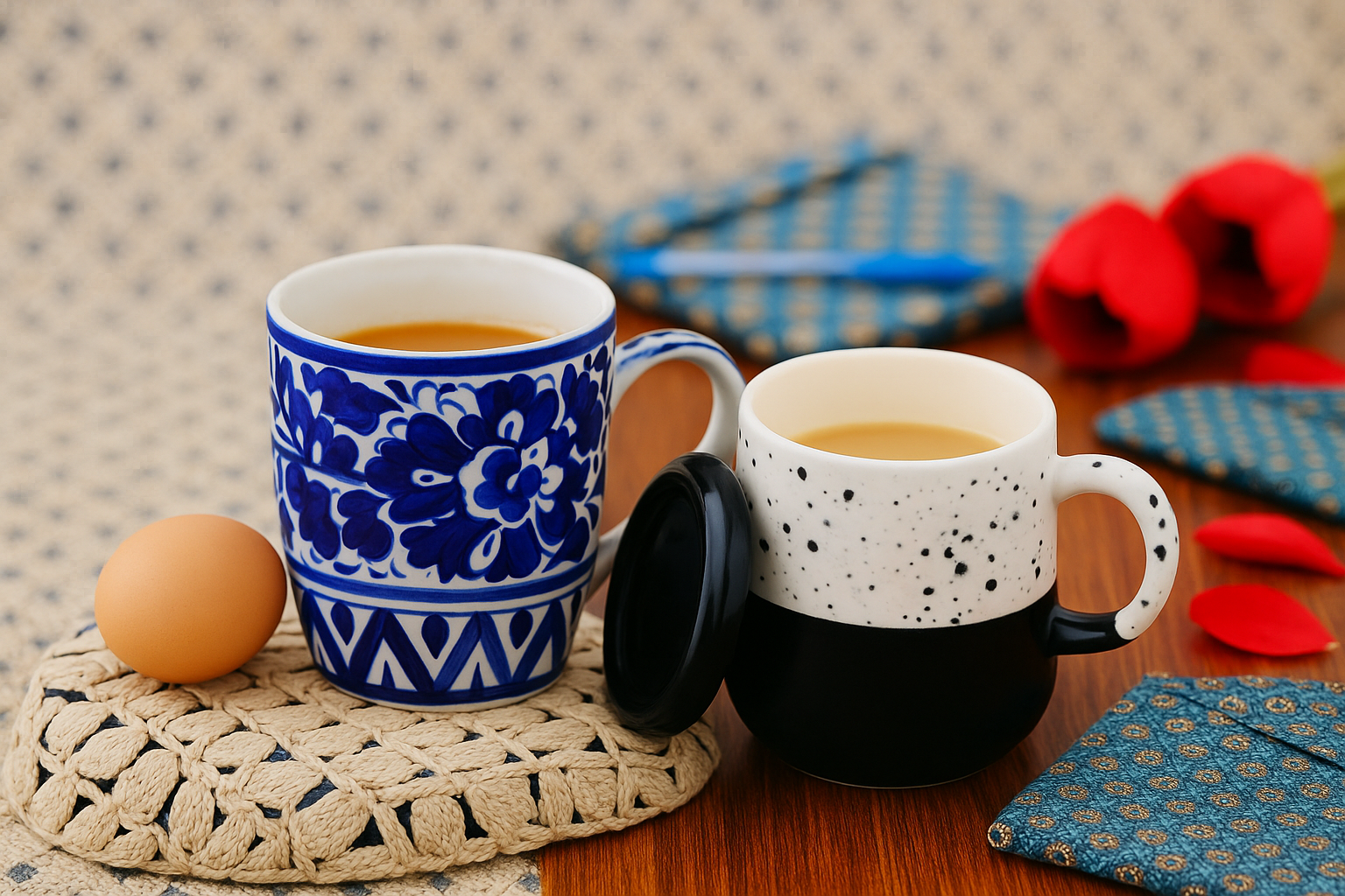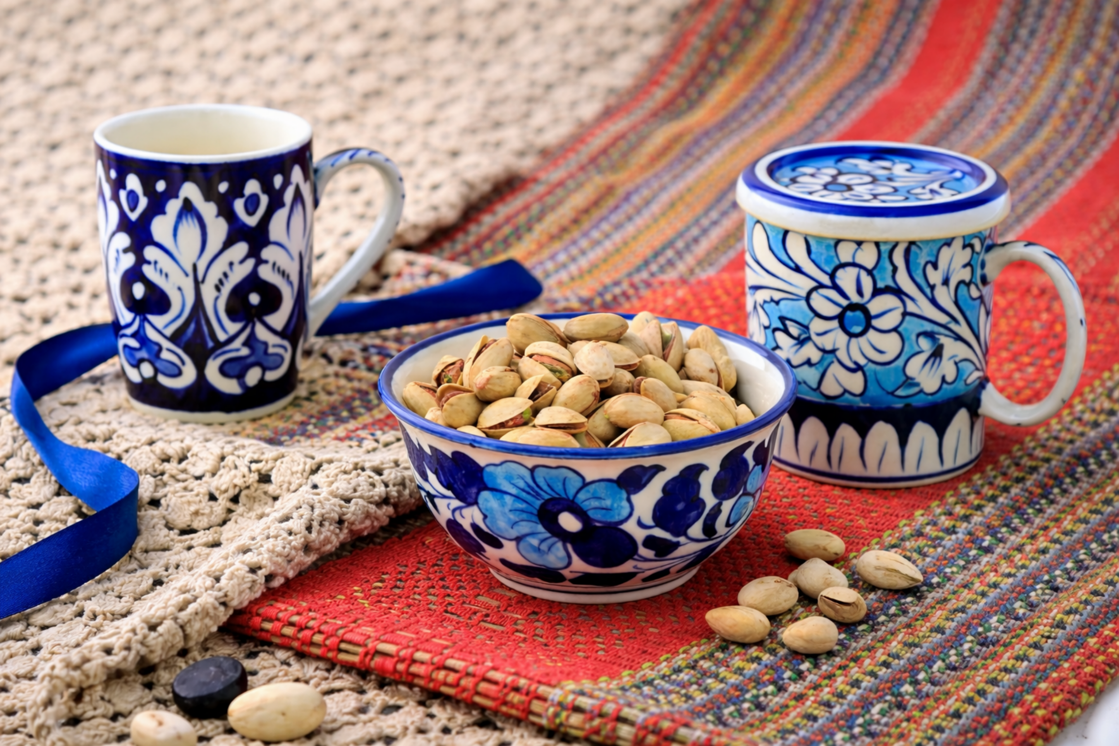 "Our Blue Pottery Ceramic Collection celebrates the timeless artistry of Multan. Each mug and bowl is handcrafted and hand-painted by skilled artisans using traditional techniques passed down through generations.